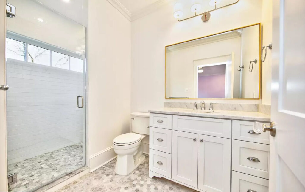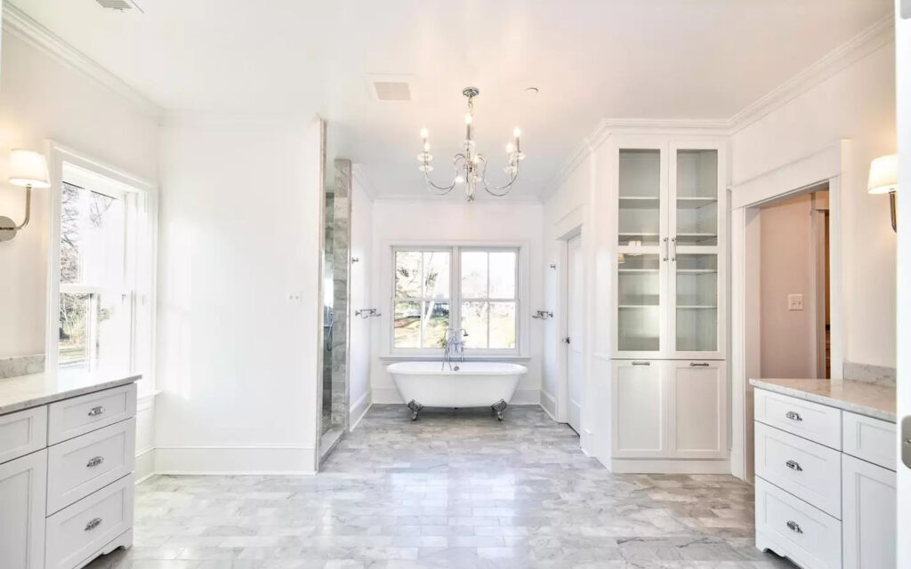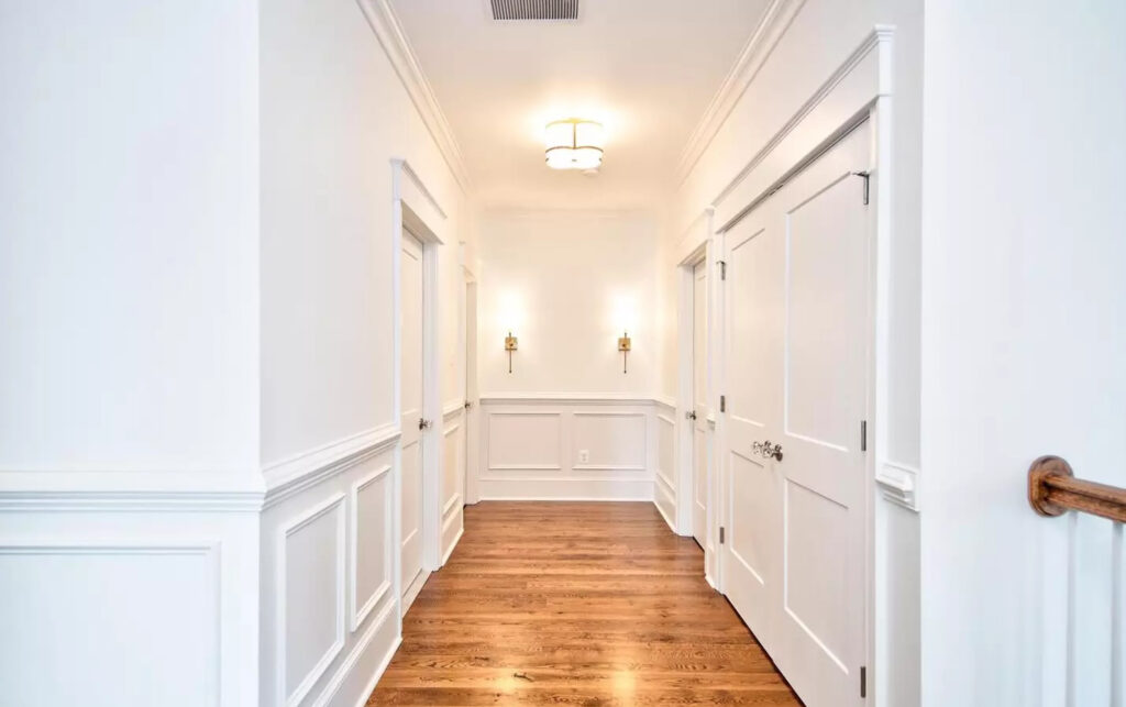 Farmhouse style homes tend to have a flat front exterior. These attractive homes feel chic, cozy, and charming, while still being clean and simple. Some common features include exposed wood beams, neutral colors (white, warm neutrals, cool neutrals, earthy tones), shiplap paneling, and ample shelving.