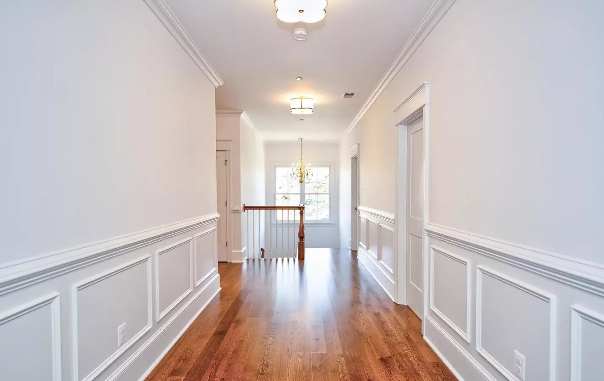 Farmhouse style homes tend to have a flat front exterior. These attractive homes feel chic, cozy, and charming, while still being clean and simple. Some common features include exposed wood beams, neutral colors (white, warm neutrals, cool neutrals, earthy tones), shiplap paneling, and ample shelving.